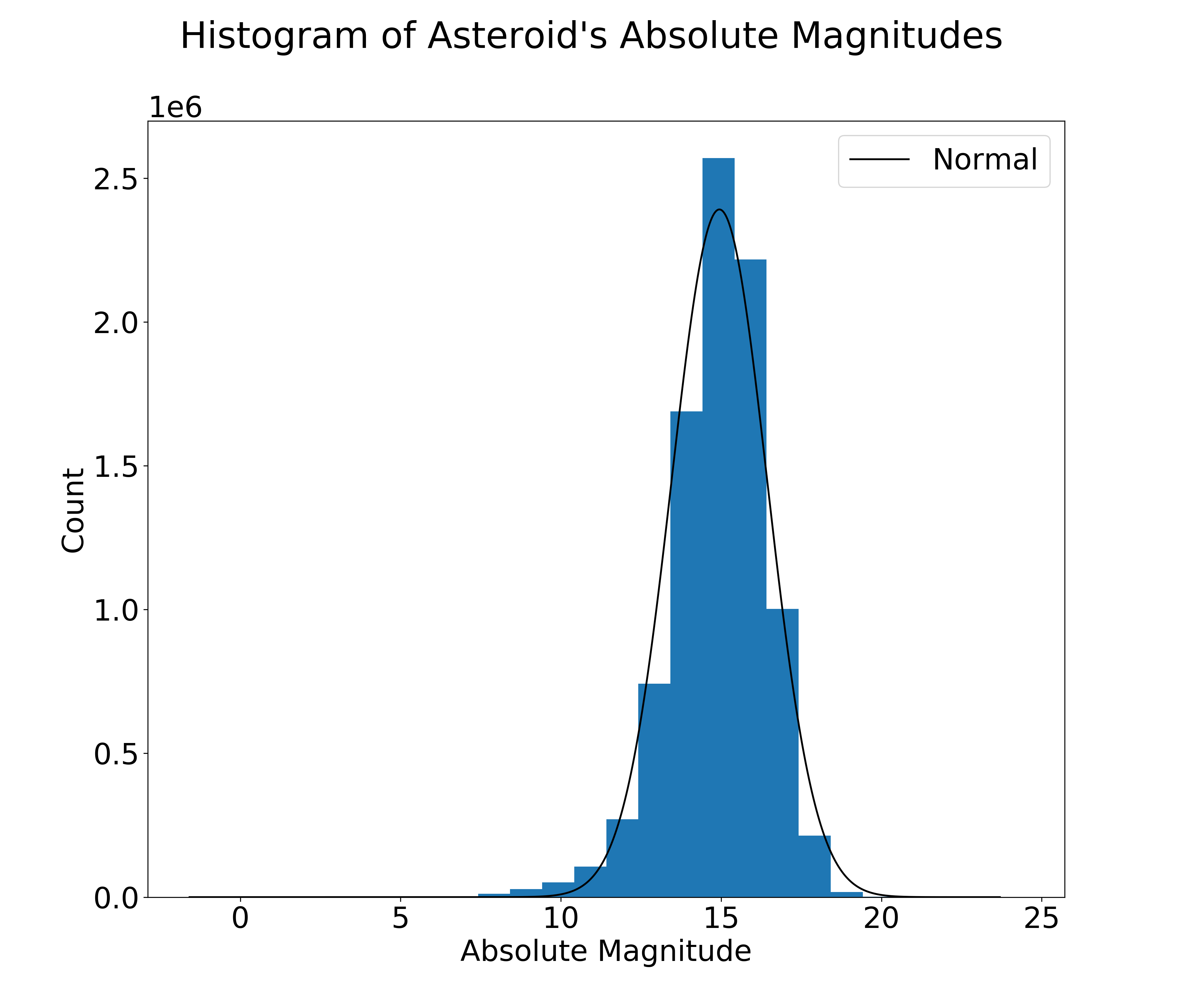 Histogram of Asteroid's Absolute Magnitudes.png