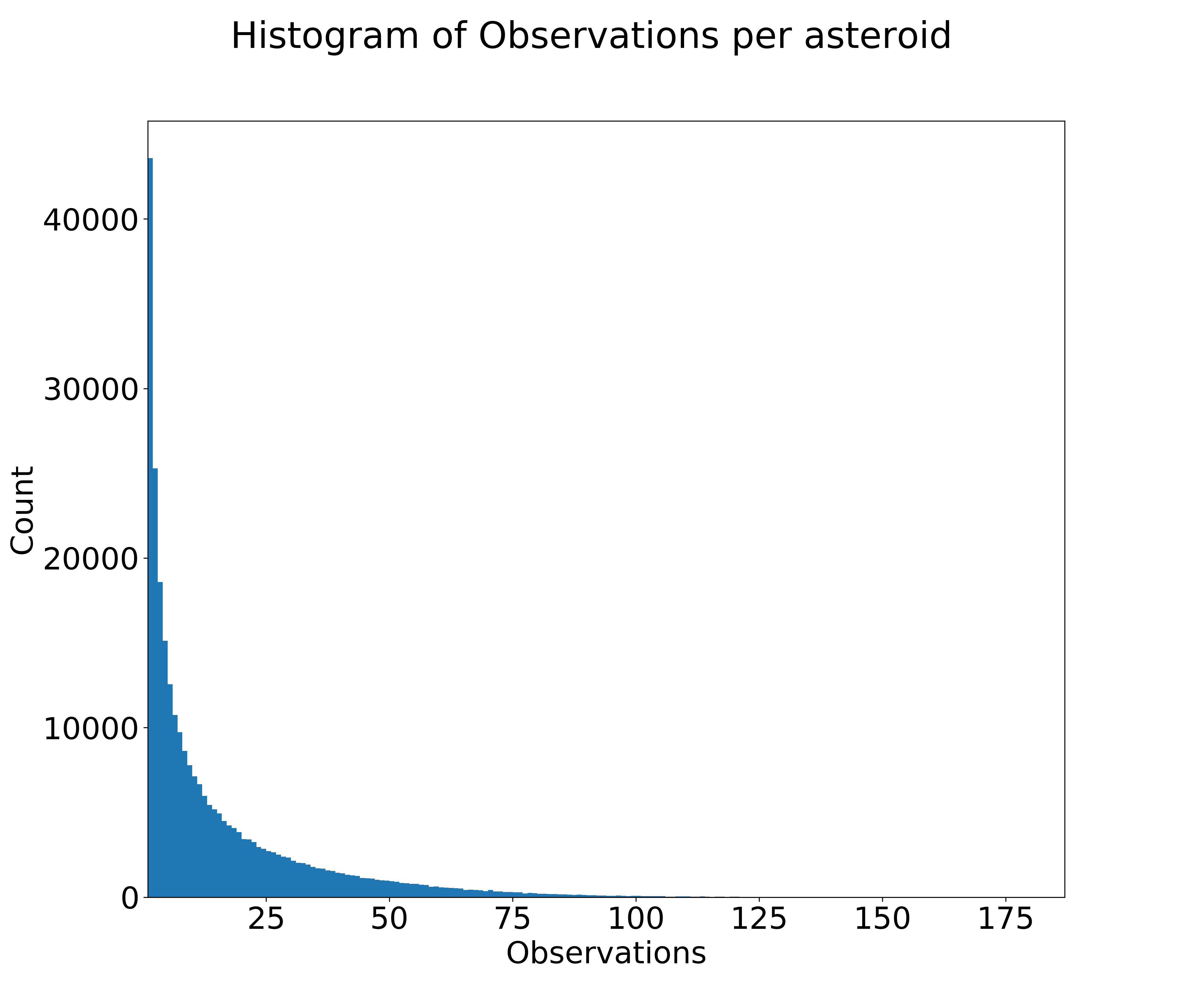Histogram of Observations per asteroid.png